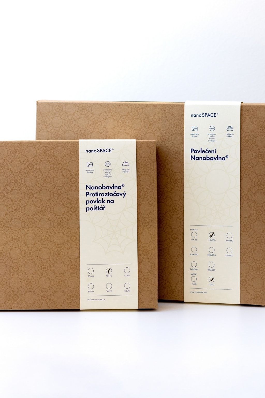 Nabízíme momentálně tři varianty protiroztočového povlečení z Nanobavlny®. Všechny jsou stejně úžasné a 100% účinné při záchytu roztočů a jejich alergenů. Jediné, v čem se liší, jsou rozměry. Stačí si tedy vybrat ten správný a můžete si každou noc užívat luxus, pohodlí a bezpečí, které vám povlečení z Nanobavlny® během spánku bezpochyby poskytne.
