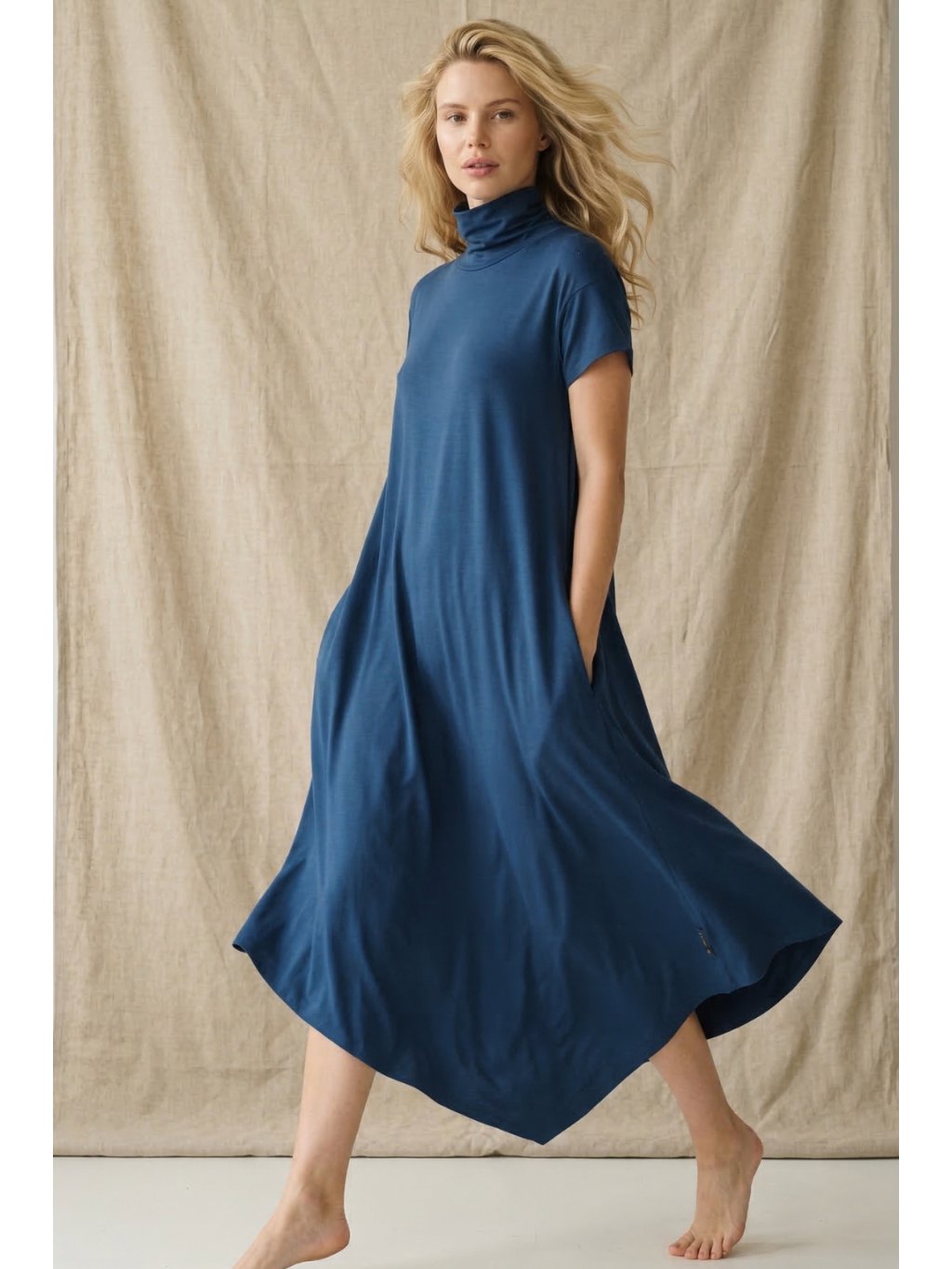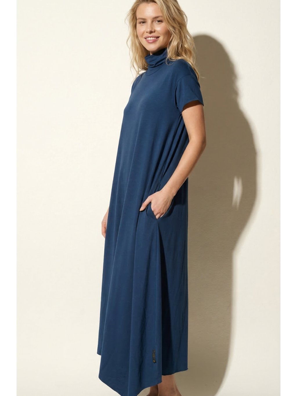 Modré dlouhé rolákové šaty Peyto nanoSPACE by LADA