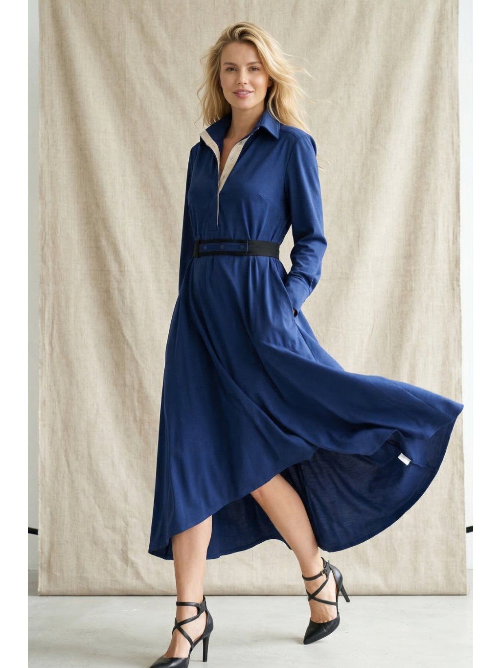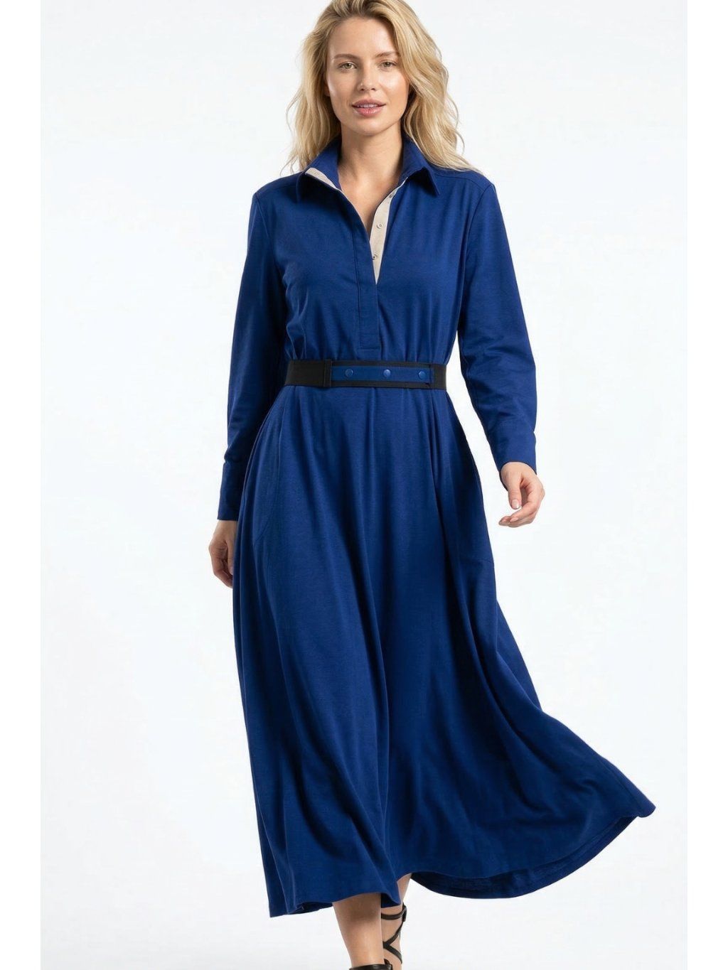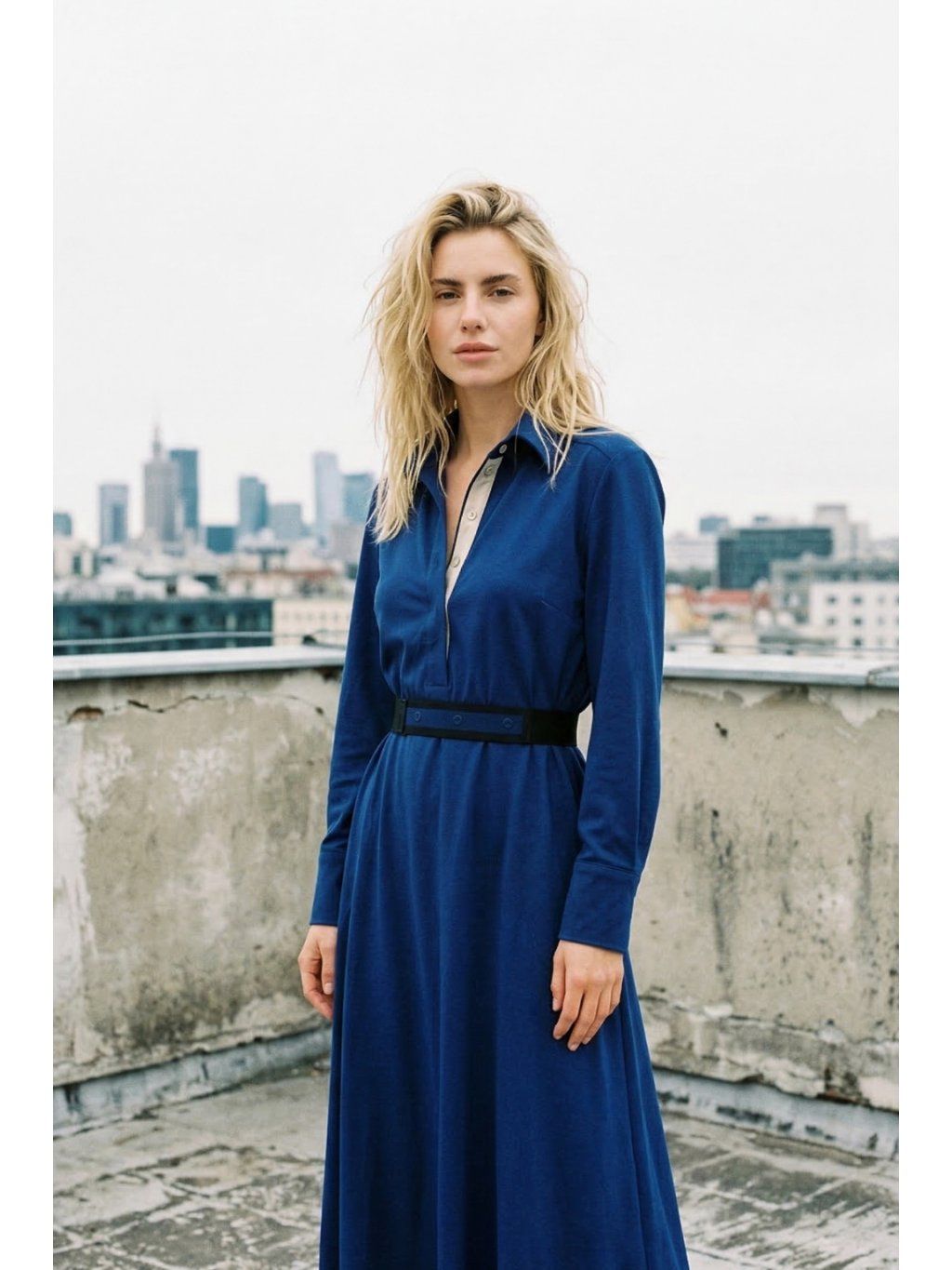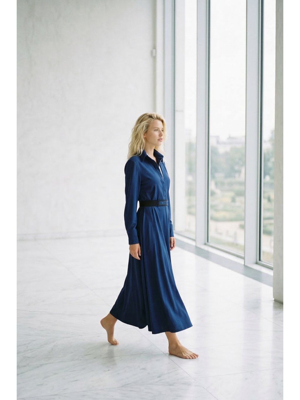 Modré dlouhé košilové šaty Ithaka – nanoSPACE by LADA