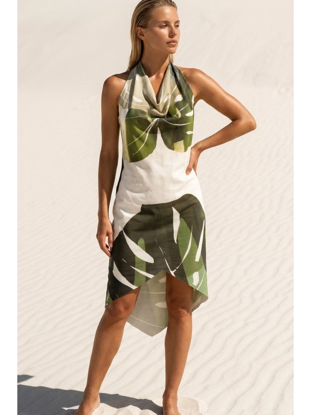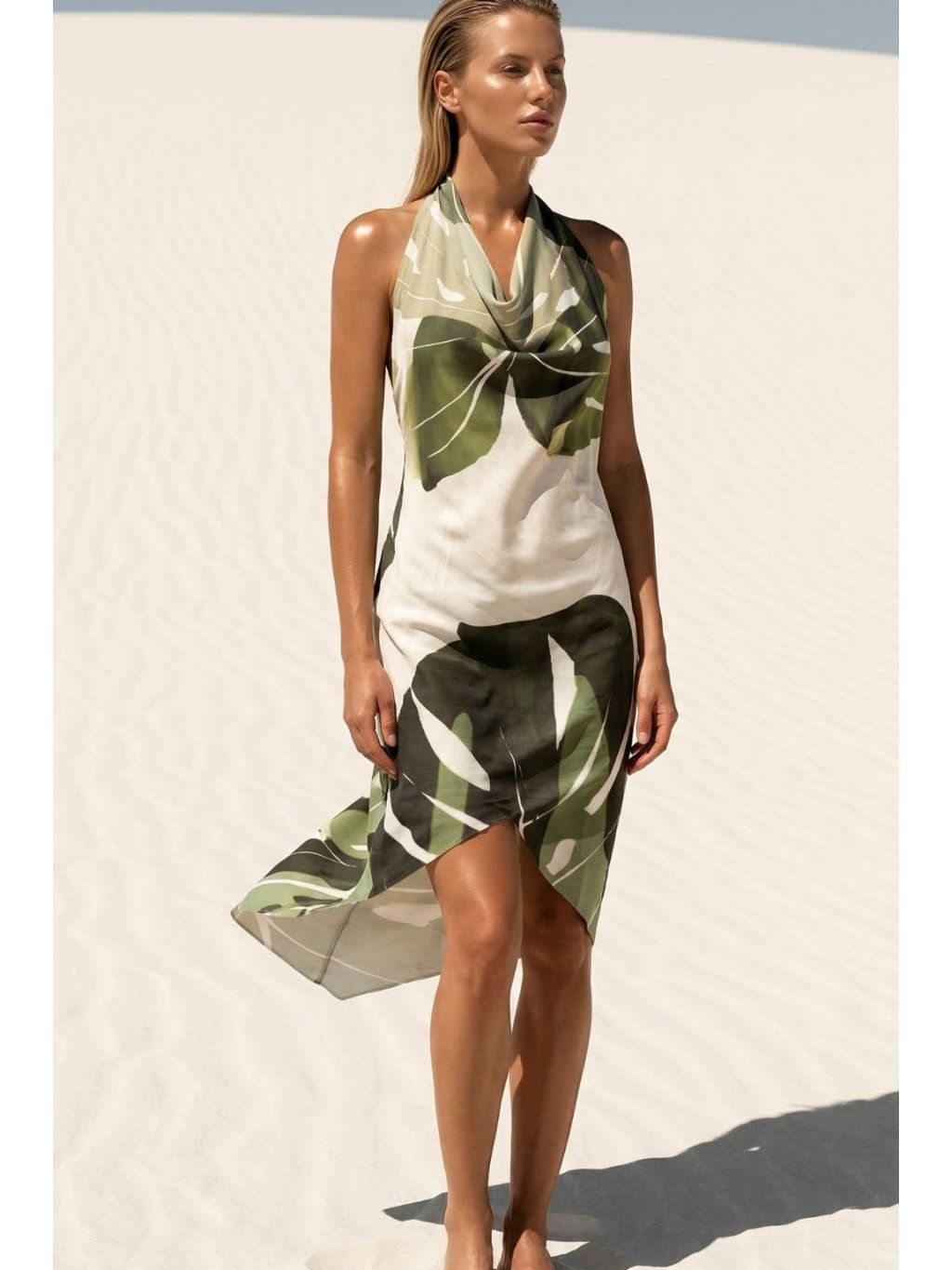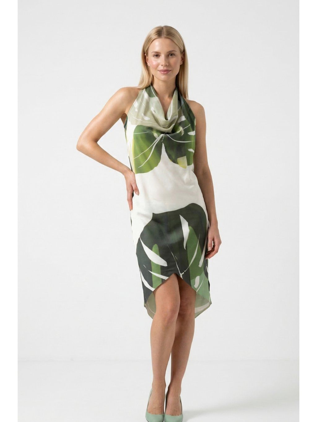 Zaväzovacie šaty Thira – Monstera zelená – nanoSPACE by LADA